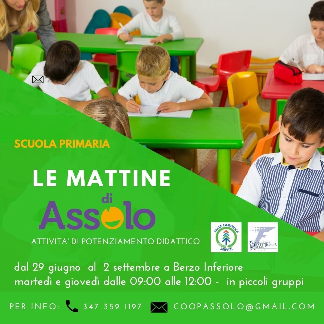 Il servizio di potenziamento didattico dedicato ai bambini della scuola primaria si terrà a Berzo Inferiore il martedì e il giovedì mattina, dalle ore 09:00 alle ore 12:00, a partire dal 29 giugno e proseguirà fino al 2 settembre.